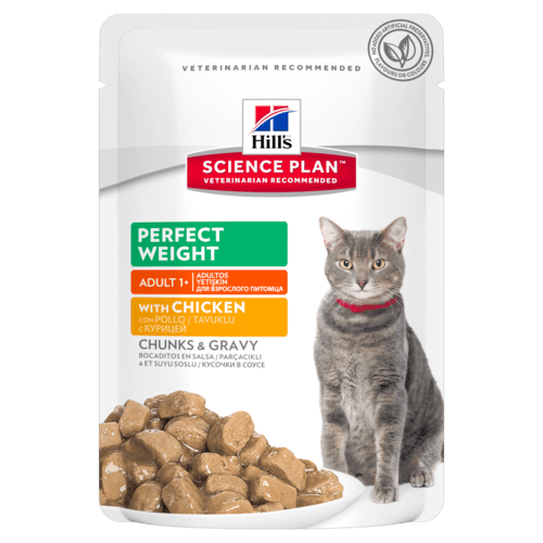 Kattens dagliga aktiviteter kan påverkas negativt om den inte har en hälsosam vikt. Foder som ger balanserad nutrition kan hjälpa katten att nå en optimal vikt samtidigt som den är mätt och nöjd. Hill’s™ Science Plan™ Perfect Weight innehåller högkvalitativa ingredienser som är noggrant sammansatta för att få fram en utsökt kycklingsmak som katter älskar. Hill’s™ Science Plan Perfect Weight finns att köpa online, hos veterinären och i djuraffärer nära dig.